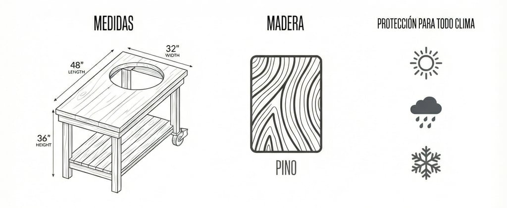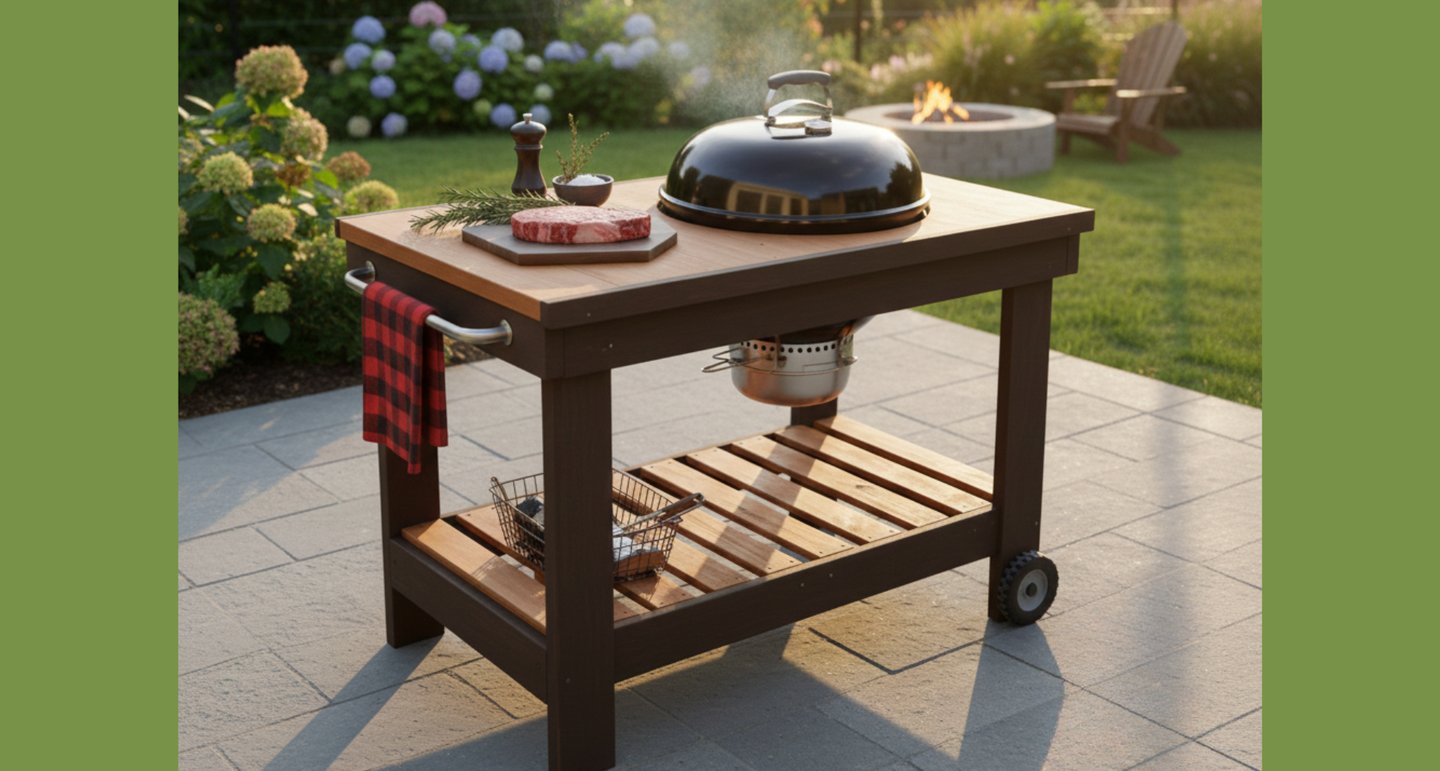 Esta mesa para asador tipo kettle es justo lo que necesitas si tienes una parrilla de 22 pulgadas. Construida para aguantar climas extremos, con pintura resistente y un diseño estándar que encaja perfecto