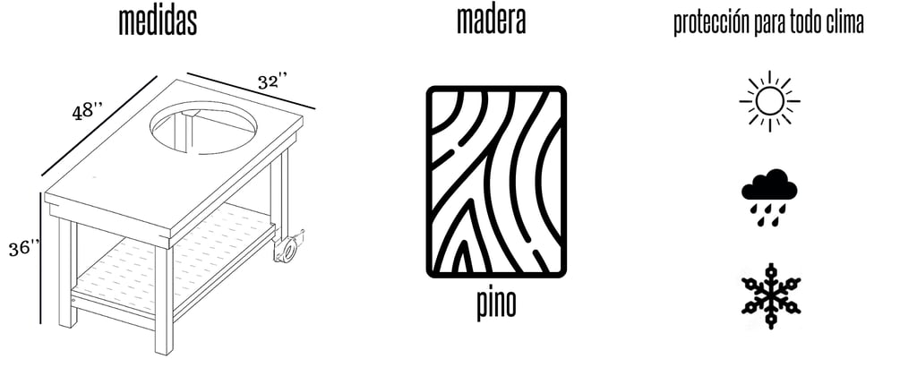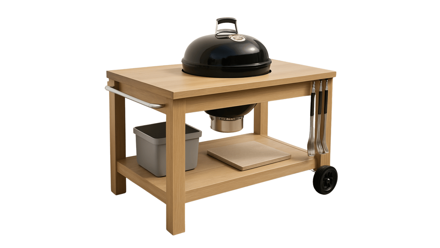 Esta mesa para asador tipo kettle es justo lo que necesitas si tienes una parrilla de 22 pulgadas. Construida para aguantar climas extremos, con pintura resistente y un diseño estándar que encaja perfecto